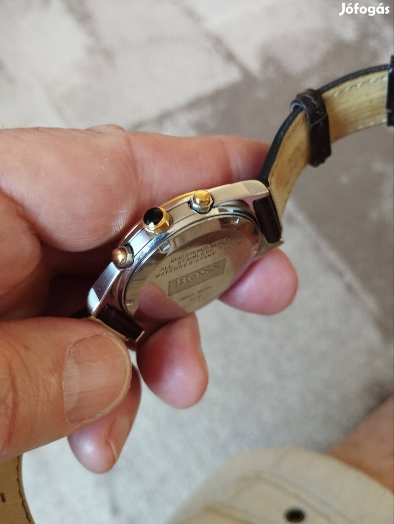 Eladó a képen látható,svájci,quartz szerkezetes(ETA251.471),23 köves, acél tokos, saját bőr szíjas Hugo Boss Metropolis chronograph karóra!