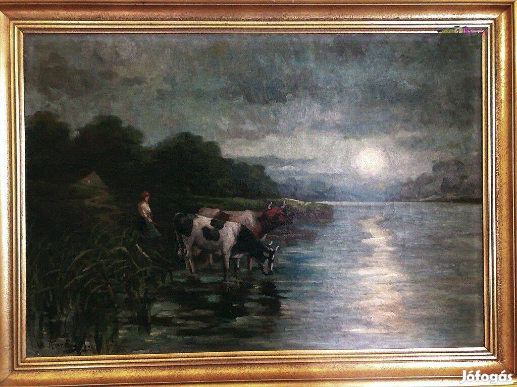 Nagy méretű, olaj-vászon festmény. Kardos szignóval. Szép, lap-aranyozott kerettel együtt adom.