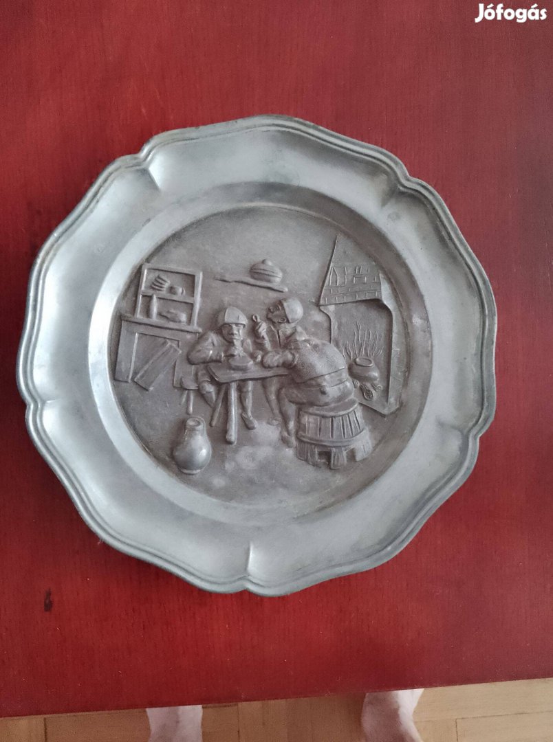 Jelenetes fém fali dísz tányér