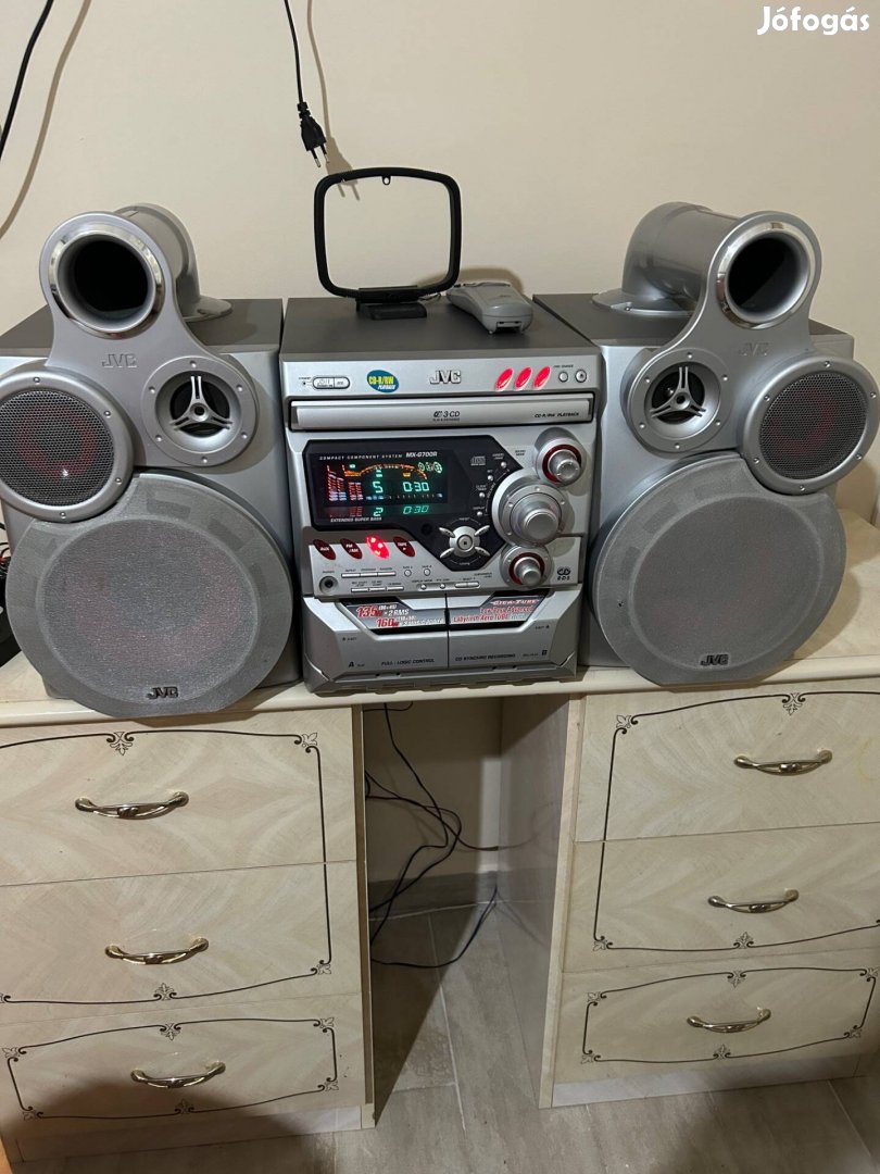 Eladó jvc hifi torony aki ismeri tudja miröl van szó nagyon erös hifi.müködik minden része és minden tartozéka meg van. A hangfal mély része 20 cm hagszorokal szerelt nem recseg egyik részesem tel