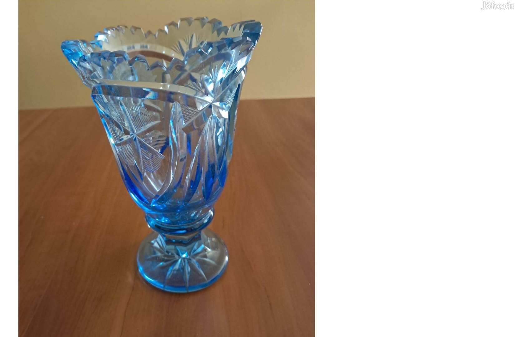Kék színű metszett kristályváza újszerű állapotban eladó.
