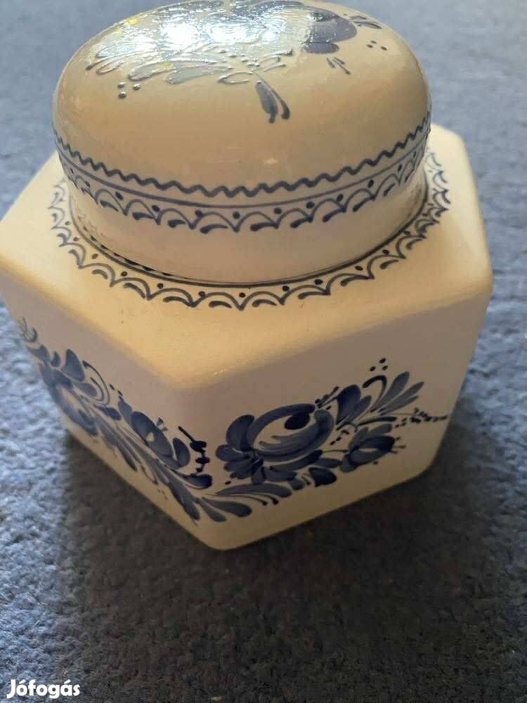 Kerámia kék festett mintájú cukortartó-új