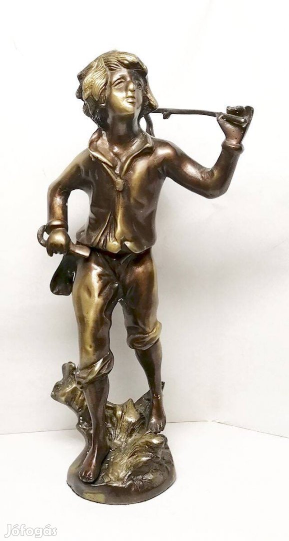 Valódi antik szobrász műalkotás, bronz fiúcska figurával.