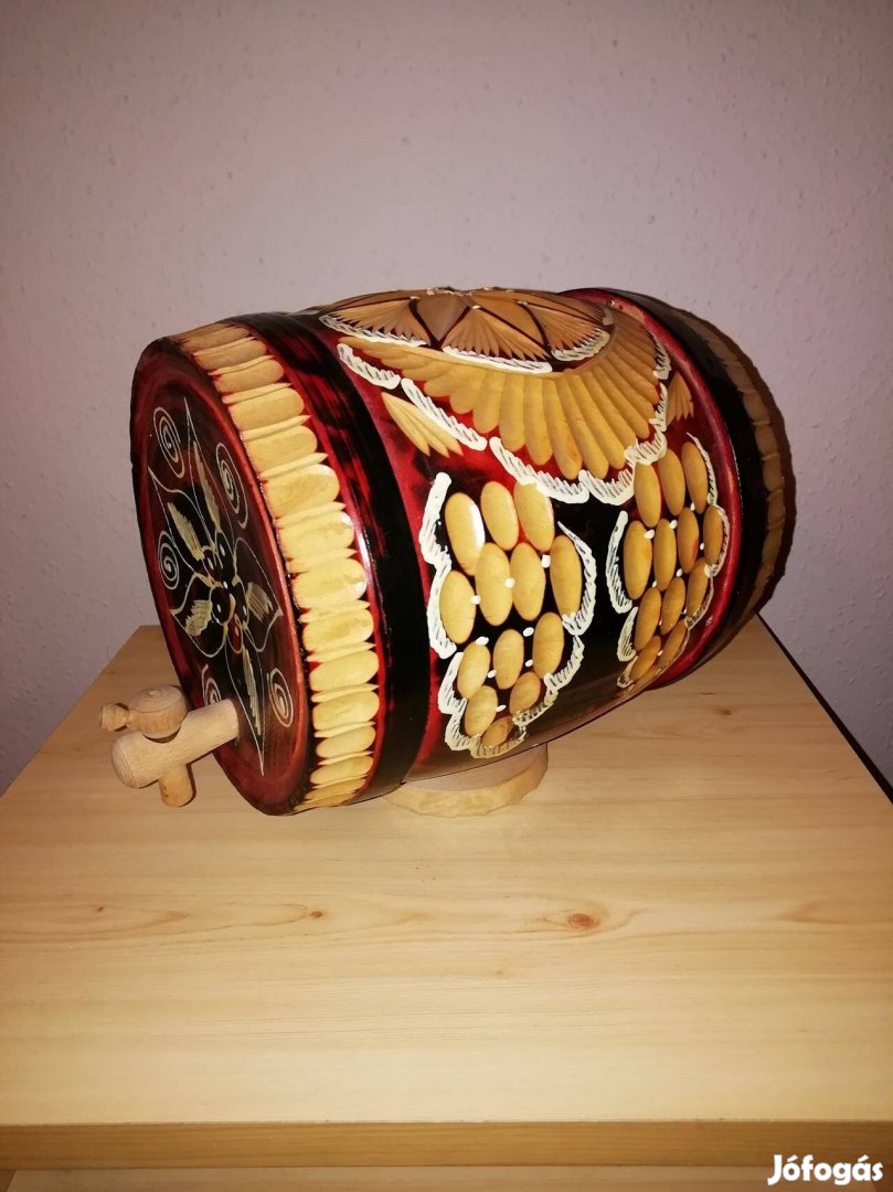 Kézzel faragott fa díszhordó az 1970-es évekből eladó.