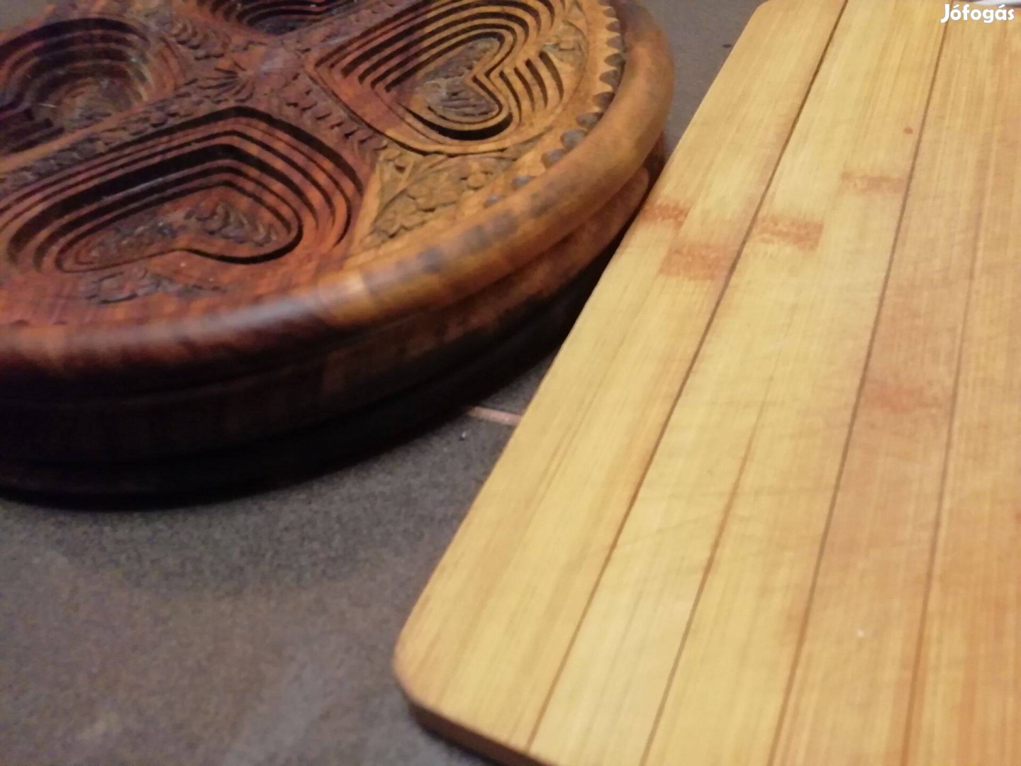Rendkívül aprólékos, kézzel kidolgozott gyümölcstál és konyhai deszka