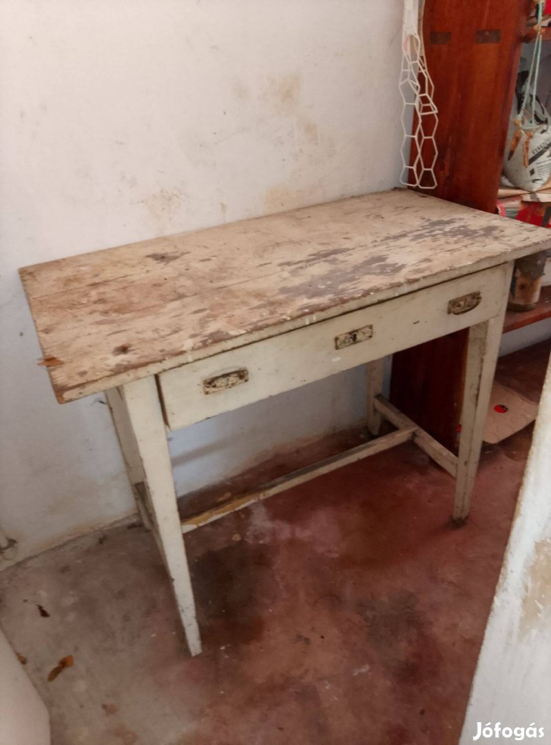 Kb 120 cm hosszú konyha asztal eladó. Felújítandó. 1 fiókos. Kb 50-60-as évekbeli lehet. Átvehető Gyomaendrődön, vagy Szolnokon.