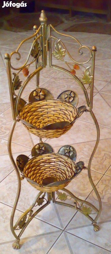 Kovácsoltvas kétszintes virágtartó sajtolt fém, és fonott elemekkel
