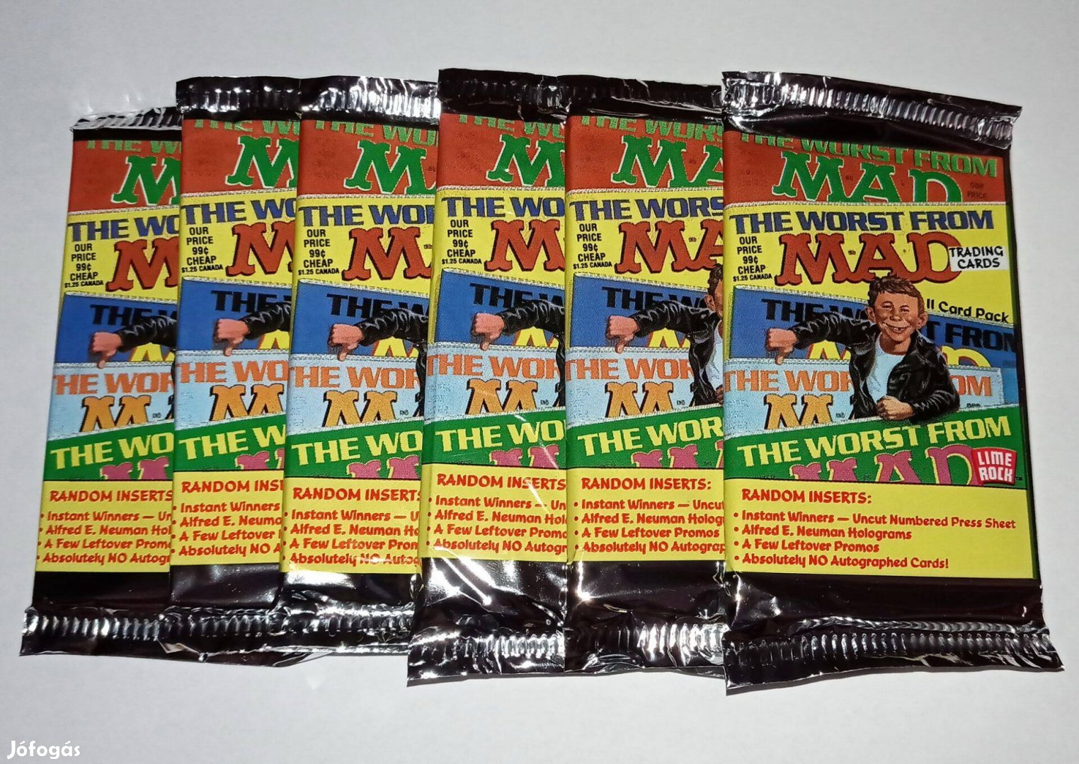 Eladásra kínálom a képeken látható MAD Lime Rock Trading Cards Series 1 kártya csomagokat. Mindegyik új, bontatlan állapotú. Minden csomagban 11 db kártya található (1992-es kiadás).