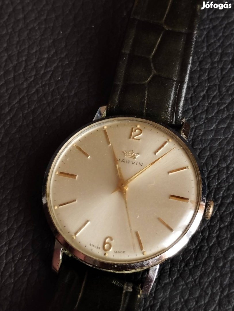 Eladó a képen látható, svájci, kézi húzós, króm tokos Marvin karóra!