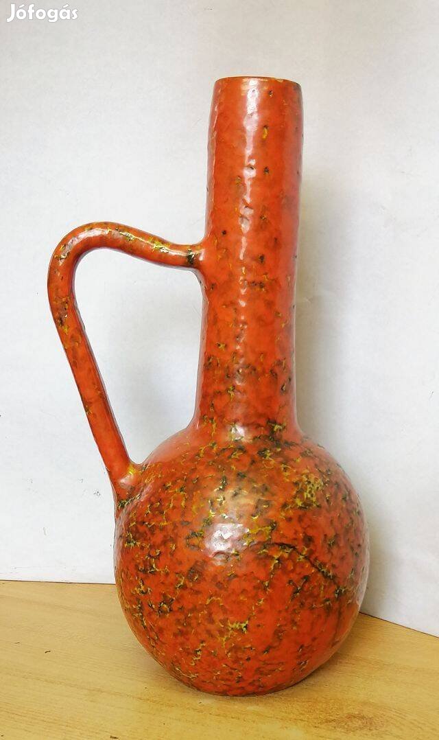 Modern iparművészeti váza vöröses rusztikus jellegű mázzal. Tófej