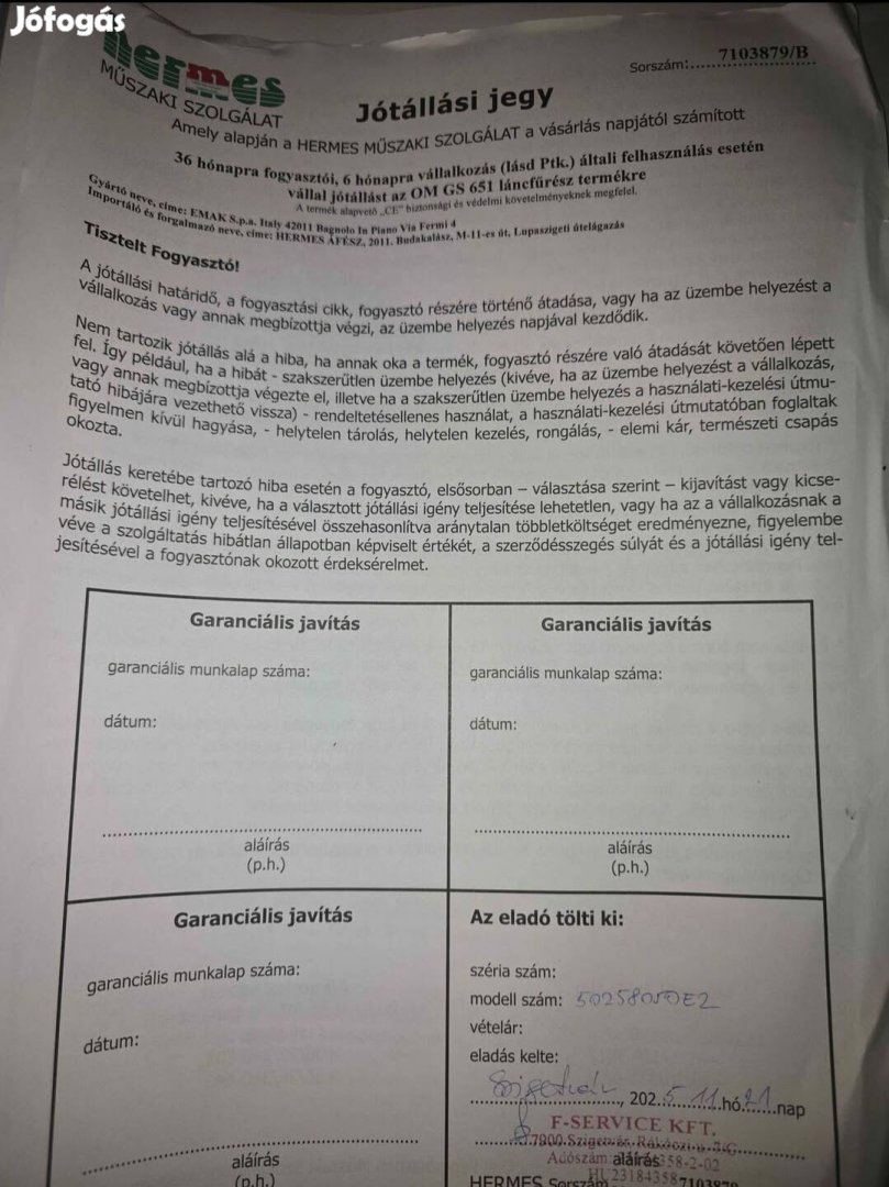 Oleo-Mac GS 651 motoros láncfűrész 2 hónapja vásárolt! Garanciás!