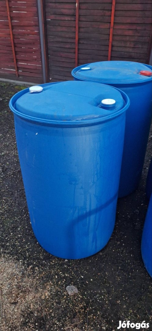 Műanyag 200l hordó egyszer használt, vízzel oldható tisztítószer volt benne