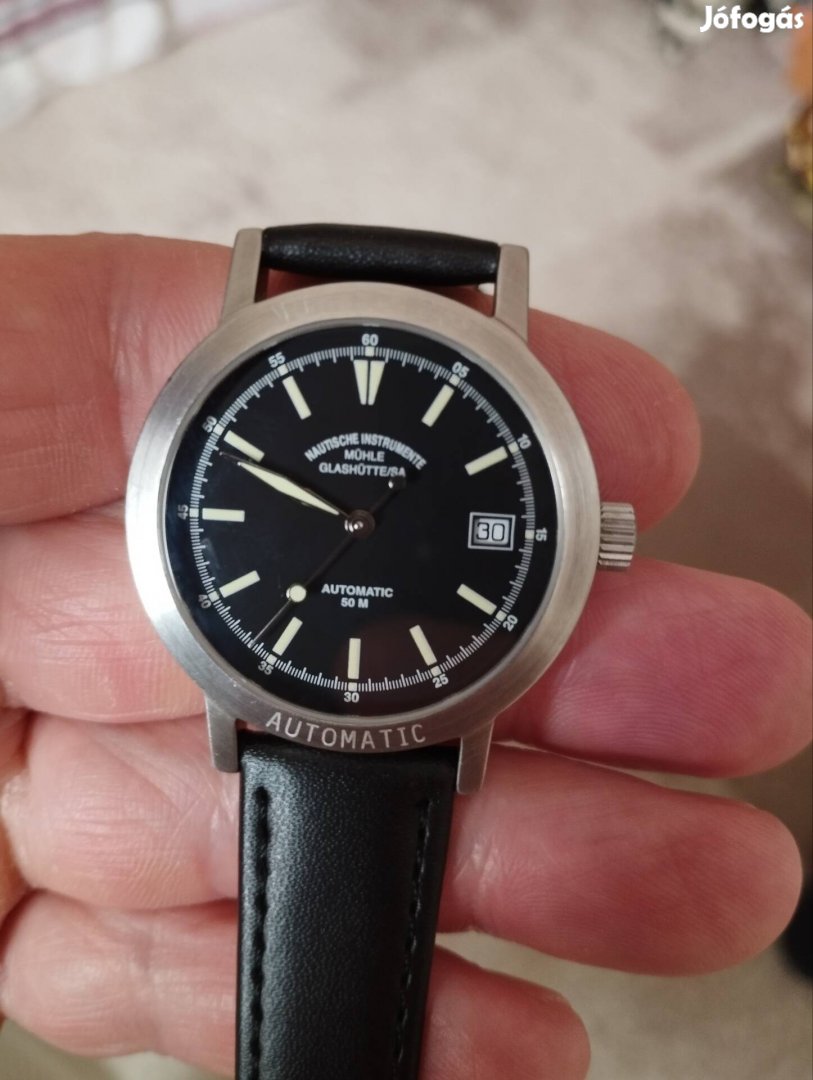 Eladó a képen látható,német, svájci autómata szerkezetes, acél tokos, zafír üveges Mühle Glashütte karóra!