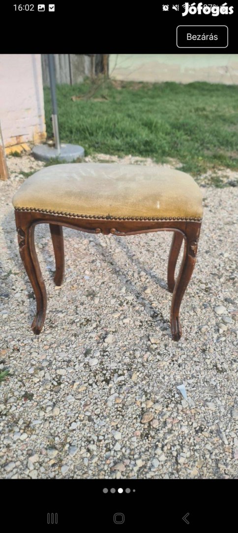 neobarokk stílusú, faragott fa lábakkal és kárpitozott ülőfelülettel