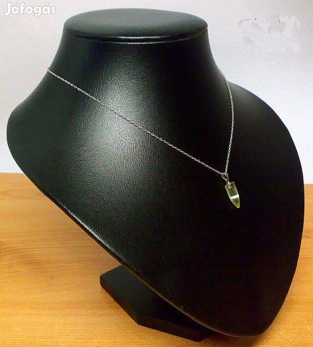 Neonzöld jégcsap forma csiszolt kristály medál ezüst nyakláncon