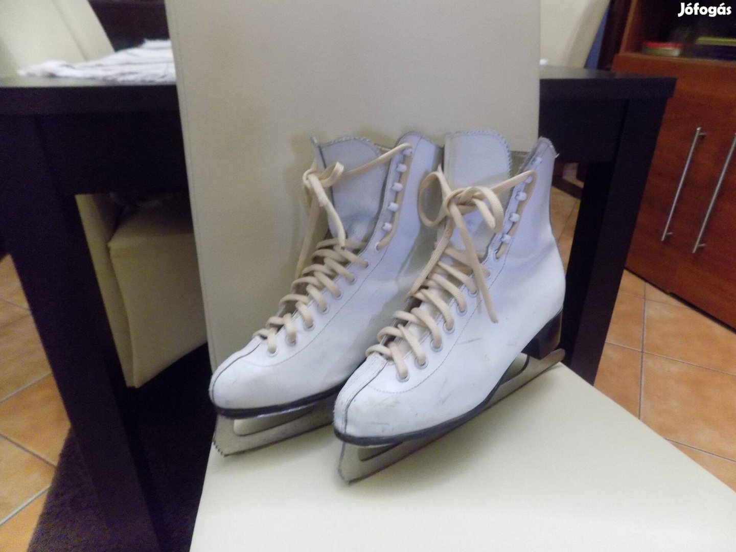 Női fehér színű, bőr, 41-es méretű korcsolya cipő. Alig használt, nagyon jó állapotban ,eladó.