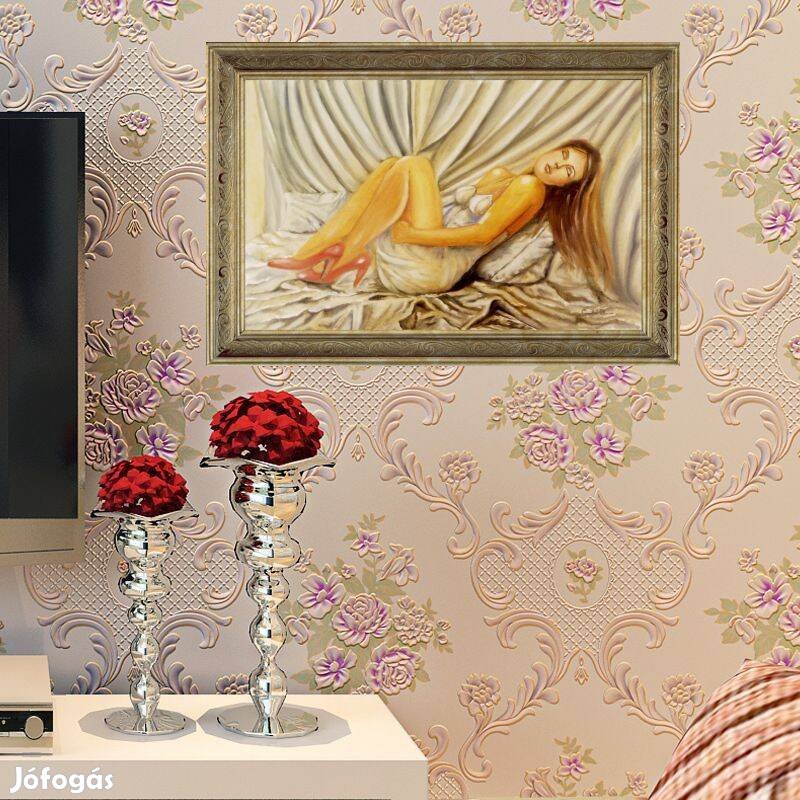 Gyönyörű, hangsúlyos, pasztell színekkel megkomponált akt festmény.