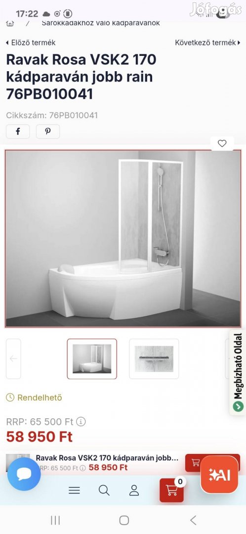 A sarokkád es a kádparaván eltérő mérete miatt eladó.