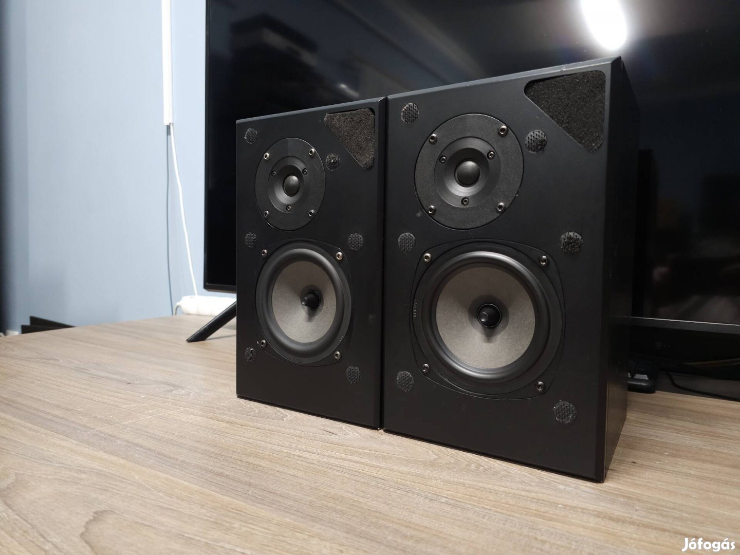 A hangfalak műszakilag kifogástalan állapotban vannak, nagyon szépen zenélnek! Esztétikailag sajnos van rajtuk jó néhány karc, kopás, illetve az előlapjuk sincs meg. Egyik magassugárzón van némi horpadás.