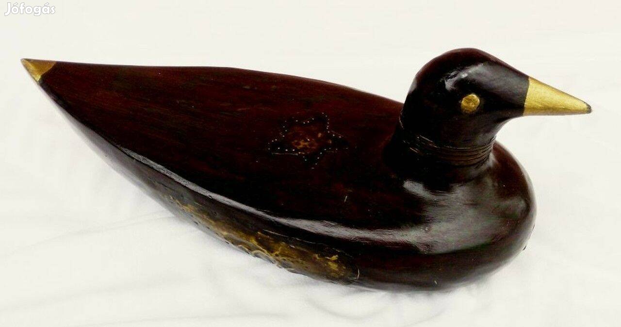 Retro faragott kézműves műtárgy. Rézveretes vízimadár szobor ritkaság