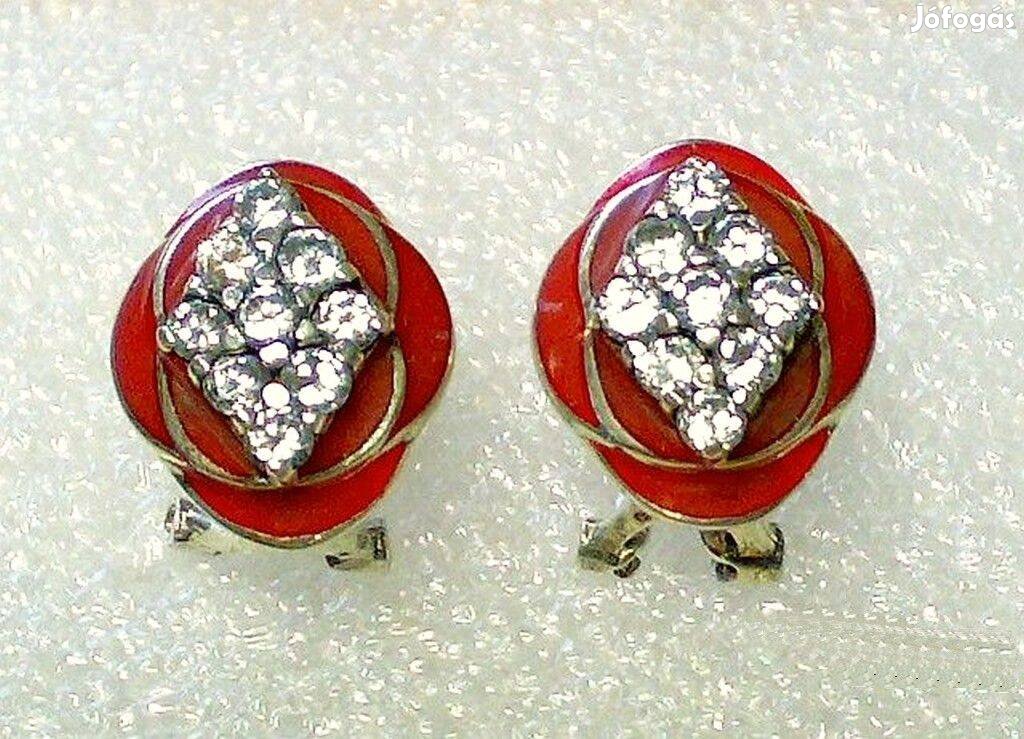 Retro fülbevalópár, rekeszzománcozott 925-ös sterling ezüst, új sohase