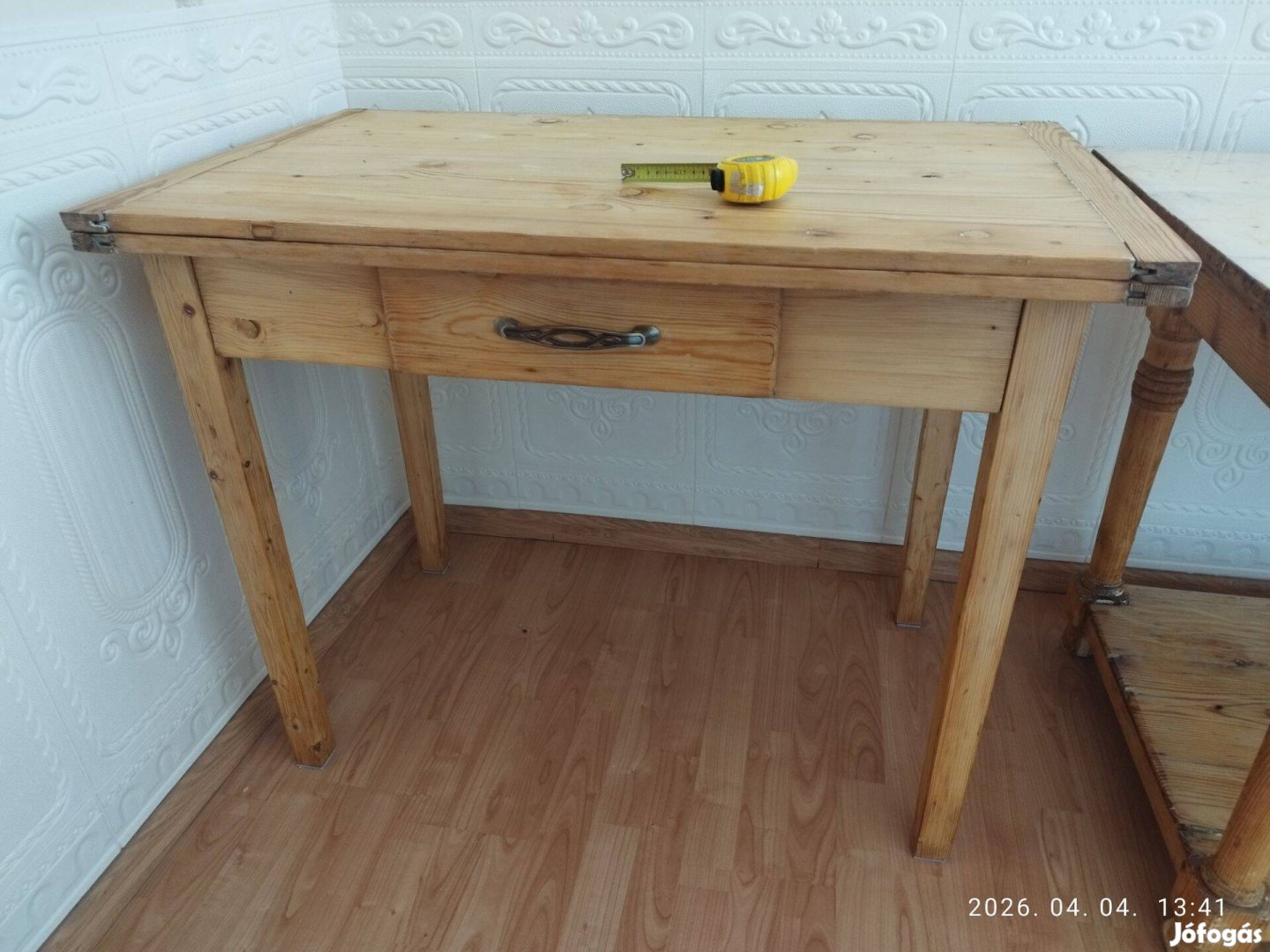 Régi konyhaasztal fiókos, felújított, kinyitható.