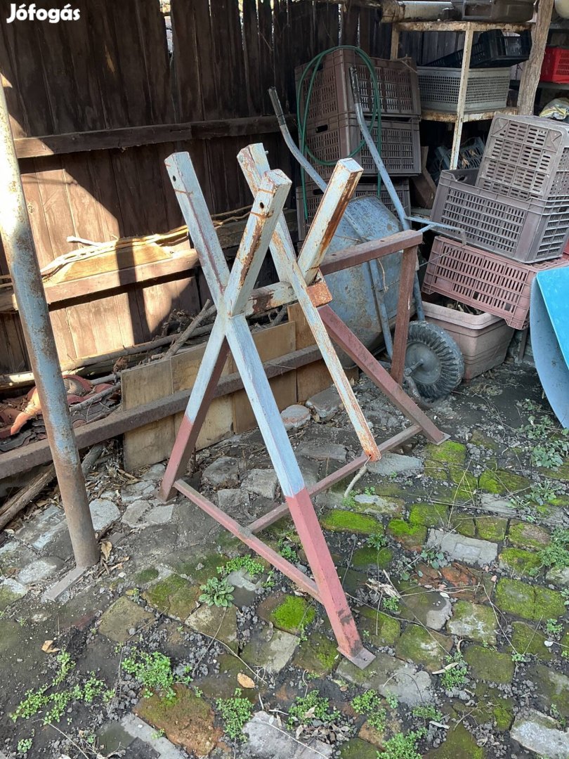 Házilag készített masszív vas favágó bak, rönk lefogó karral eladó.
