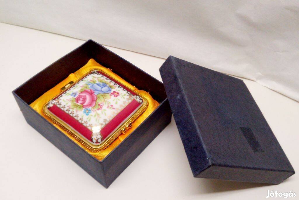 Rózsás négyzetforma ékszeres szelence porcelánból