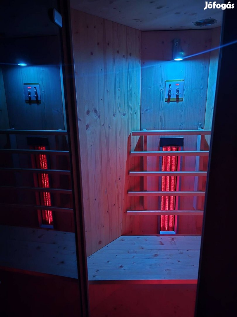 Sürgősen Eladó egy Gyógyászati minősítésű premium Delphin Wellness TM1 Light Infraszauna. Thera-Med Full Spektrum sugárzókkal Ajánlom kicsit utánanézni milyen horror áruk van. Egyik 500W másik 750W. Csak a vezérlő panel kerül közel 350.000ftba. A szauna Új ára több mint 1.5 M ft. A szaunára a cég 30 év garanciát biztosít. Sajnos számla már nincs meg így nem tudom hogy így is érvényes e még. Minden tökéletesen működik és szép