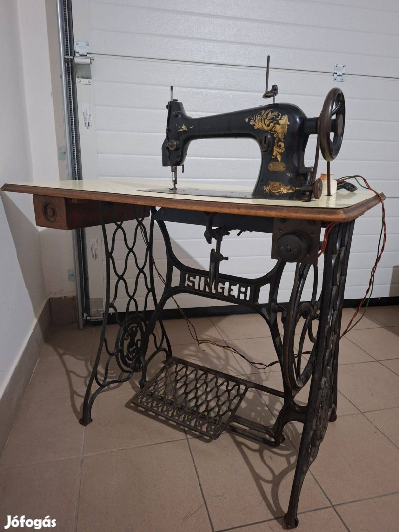 1899-es évjáratú U.S.A.-ban gyártott, működő Singer varrógép és régi férfi szabó olló (27 cm, éle 17 cm) eladó.