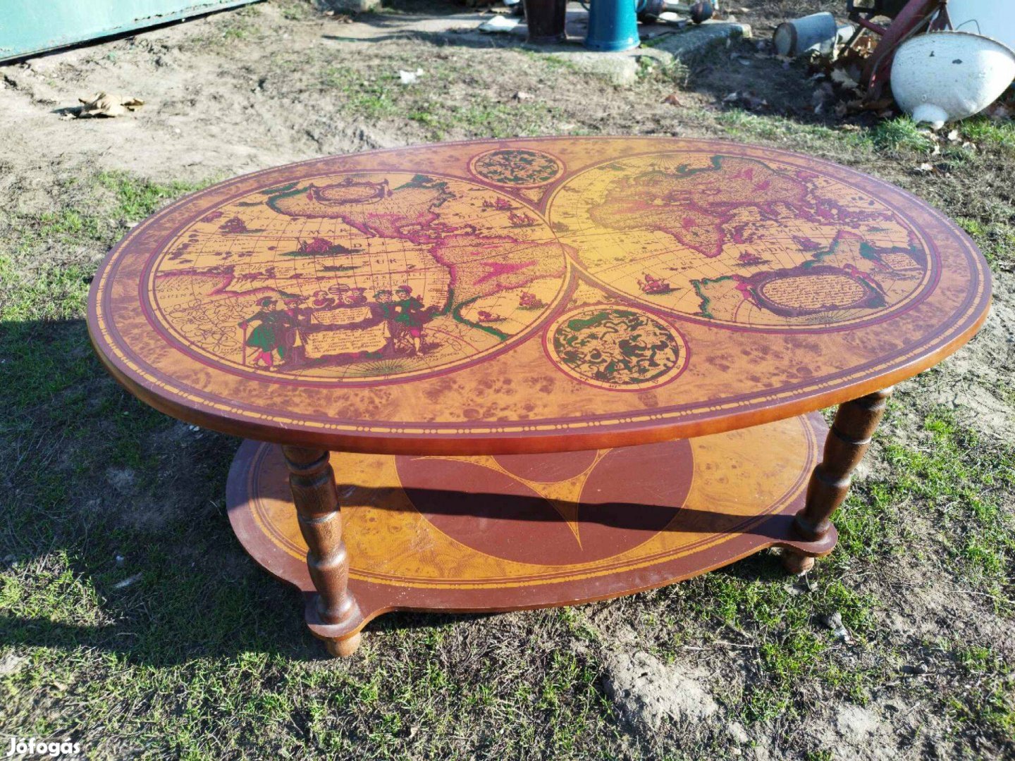 Eladó régi térképmintás asztal.