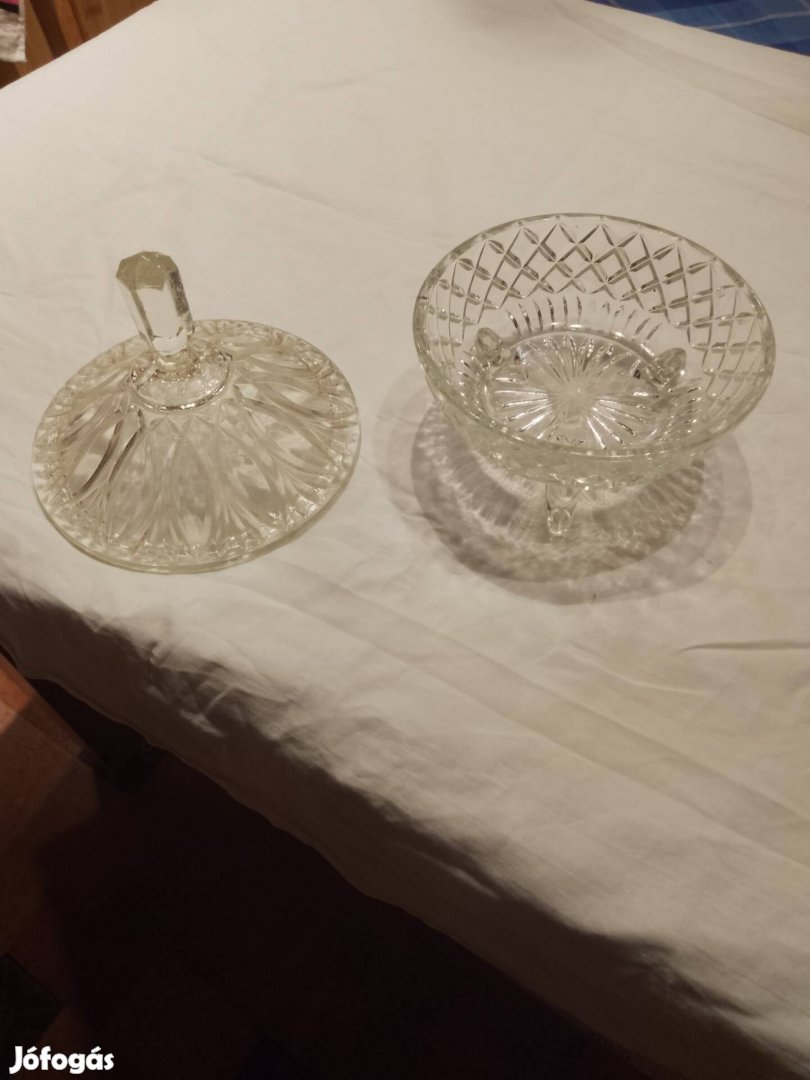 Eladó a képeken látható üveg " kristály" kínáló, desszert, szervíz tál.