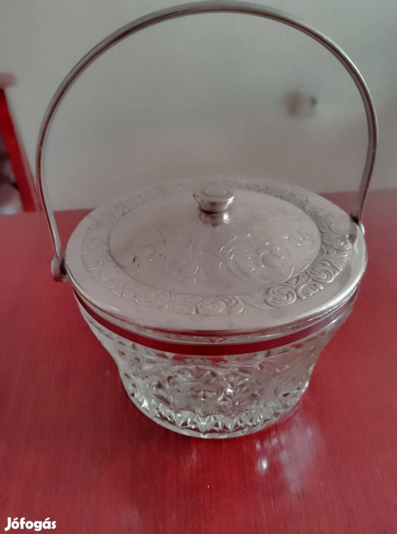 9,5 cm magas , 12,5 cm átmérő. A fém részek nem ezüstök , nem jelzett a termék.