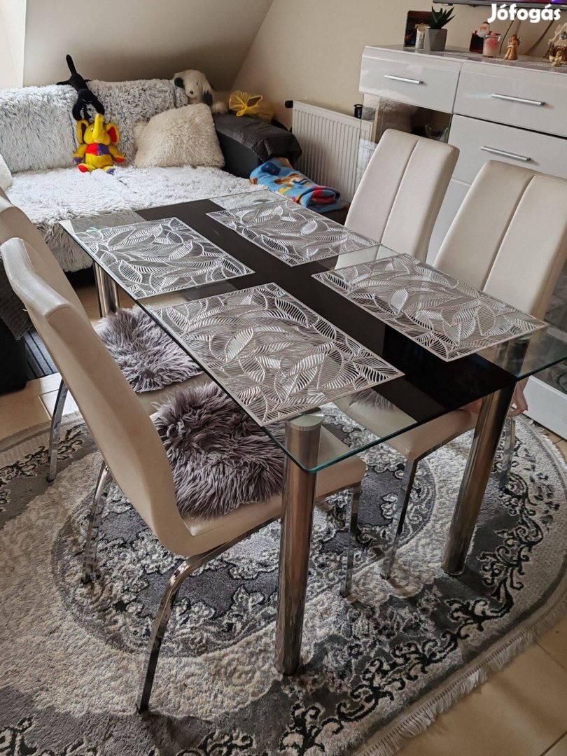 Üvegasztal 4 székkel