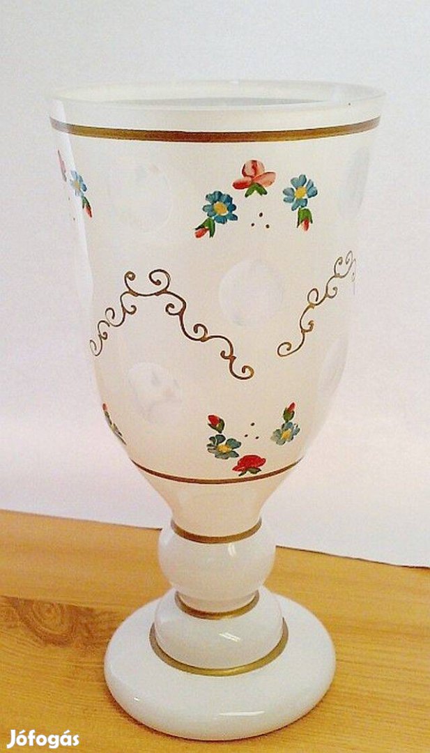 Üvegkehely biedermeier stílusban, fehér, stílusos, aranyozott kézi fes