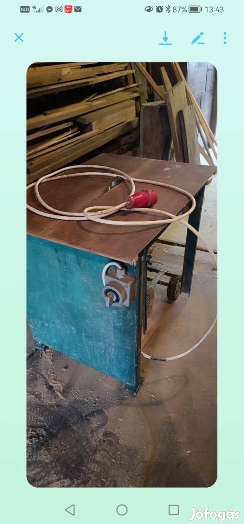 Asztali körfűrész 380v motorral eladó. Használt jó állapotú gép