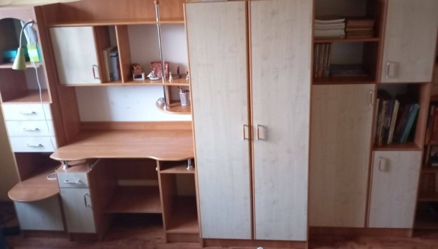 Teljes ifjúsági szekrénysor íróasztallal juhar/cseresznye
