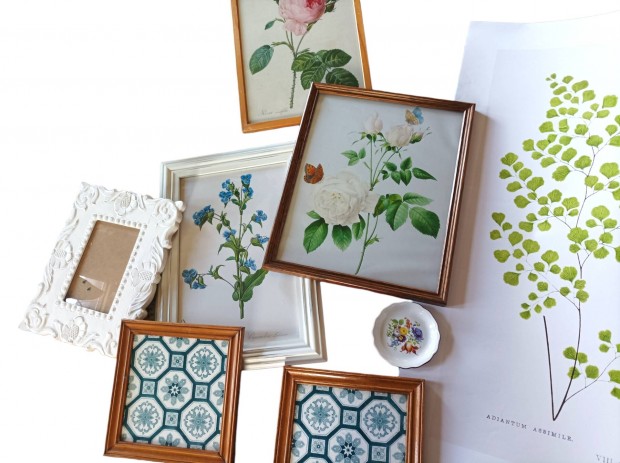 Régi virágos nyomat reprodukciója, keretben. mi