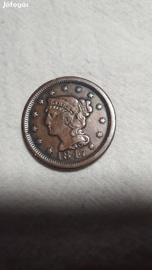 USA 1 cent Nagyon Ritka, 1847-ben vert ,Verdefényes! Ajánlatokat Várok.
