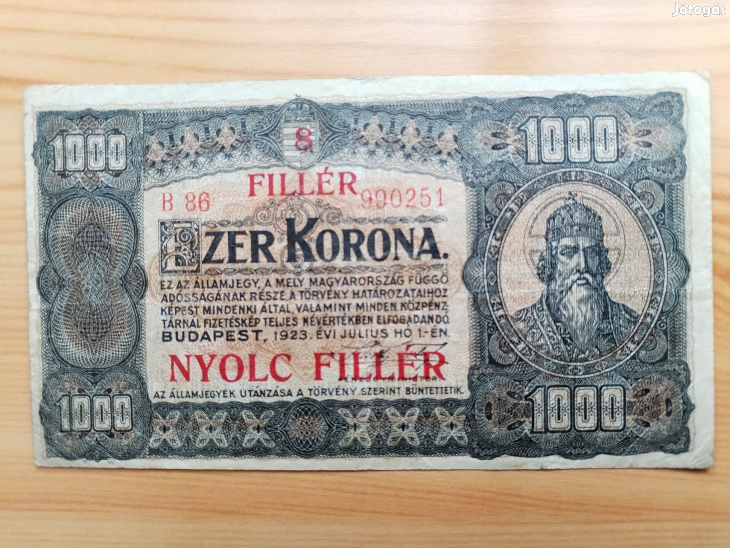 1923-as Papírpénz ritka db 1000 Korona 8 fillér felülbélyegzéssel