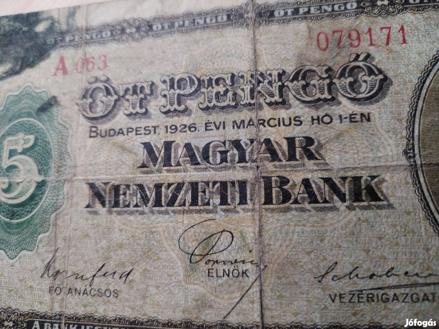 1926-os 5 pengős papírpénz Extra ritka sajnos tintanyomos