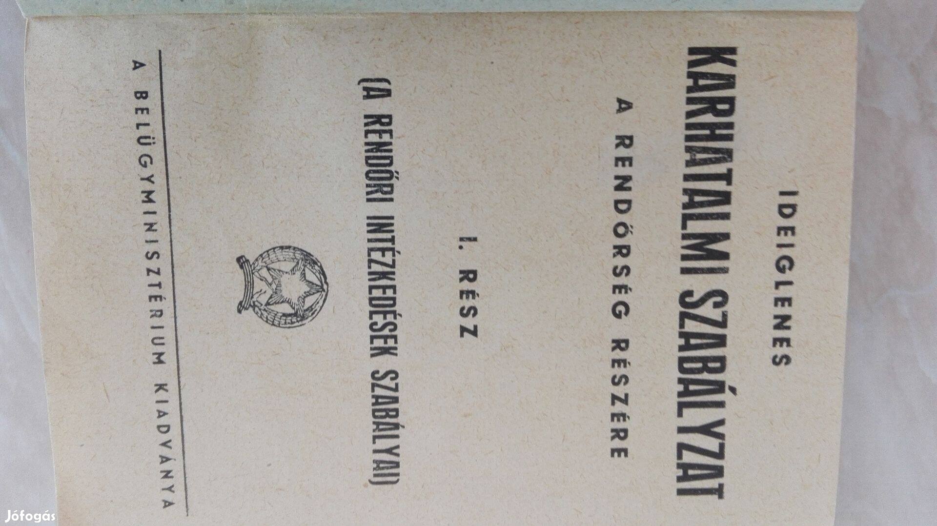 1951-es Karhatalmi Szabályzat Belügyminisztérium kiadása Ideiglenes ritka db