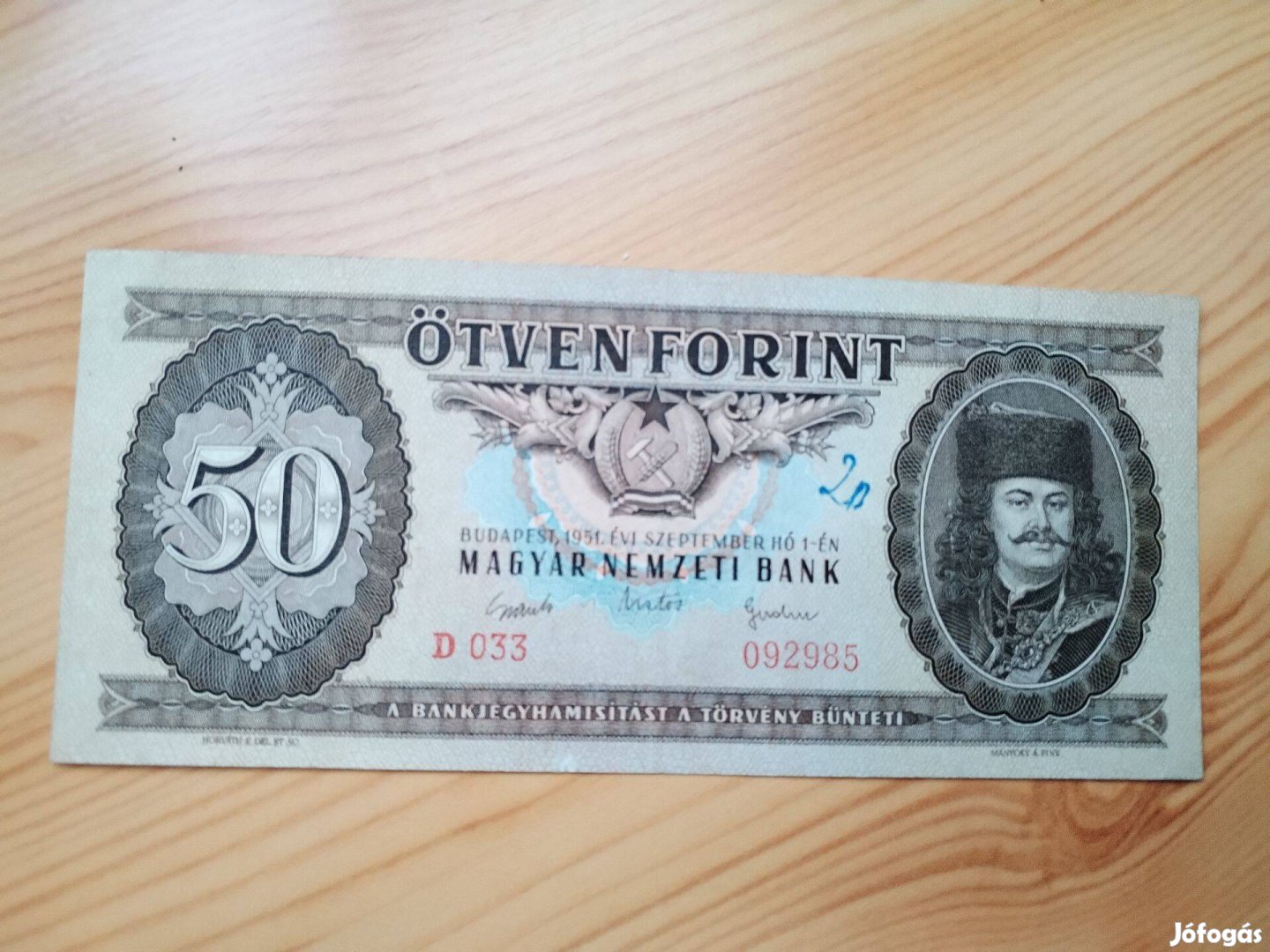 1951-es papírpénz II.Rákóczi Ferenc 50 forintos ritka db