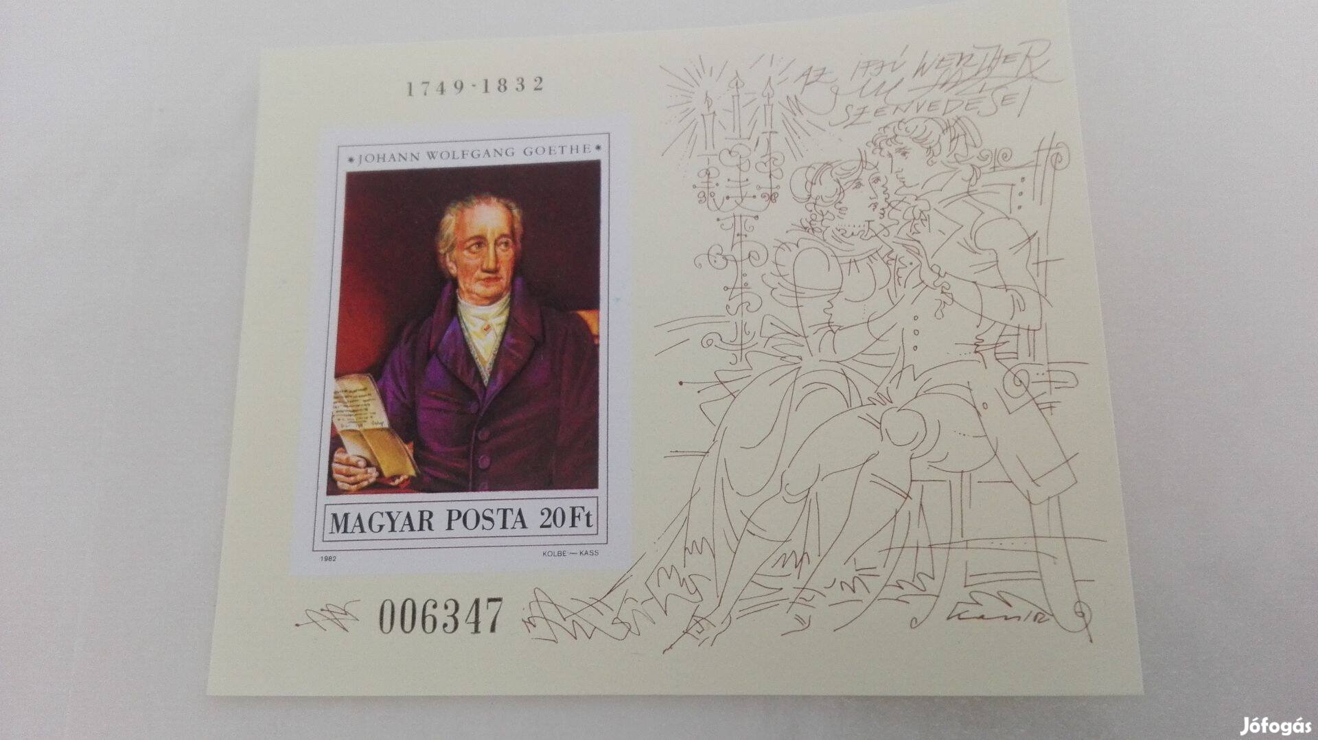 1982-es ritka vágott bélyeg blokk "Johann Wolfgang Goethe"