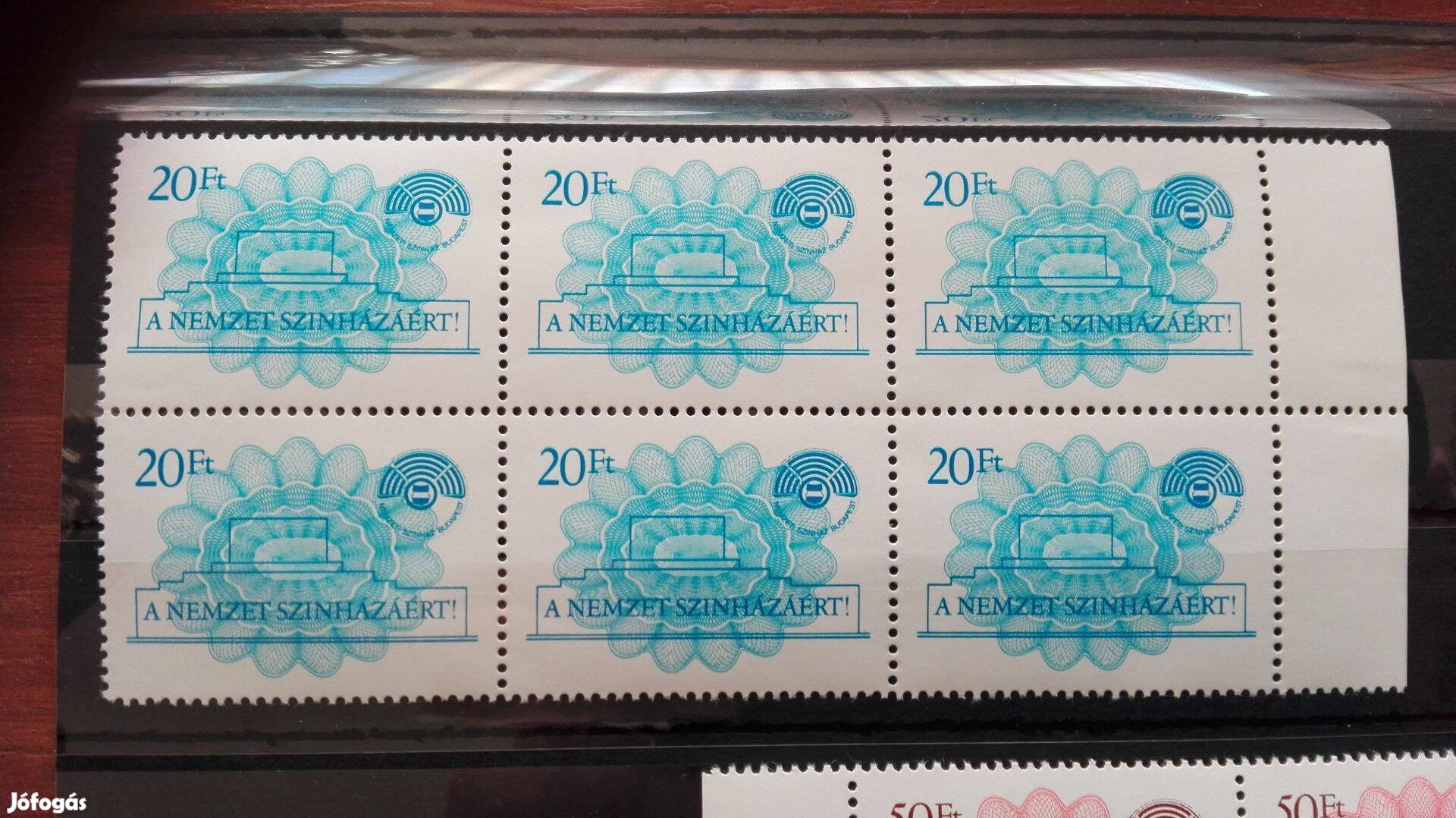 1985-ös 6 db 20 Ft-os Nemzeti Színházért adománybélyeg