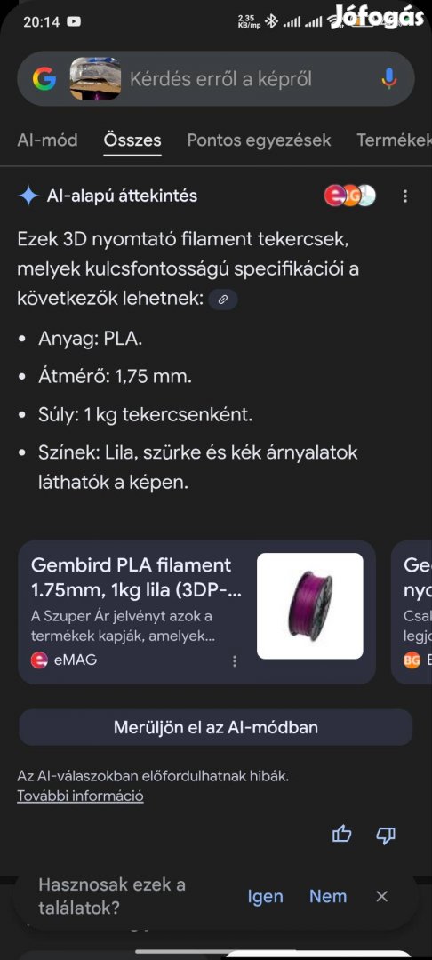 3 db darabonként 1kg 3D nyomtató tekercs.