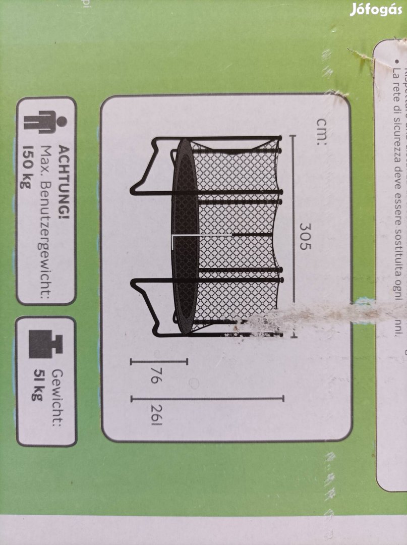 Eladó a képeken látható kültéri, védőhálóval felszerelt trambulin, mely 3 m átmérőjű.