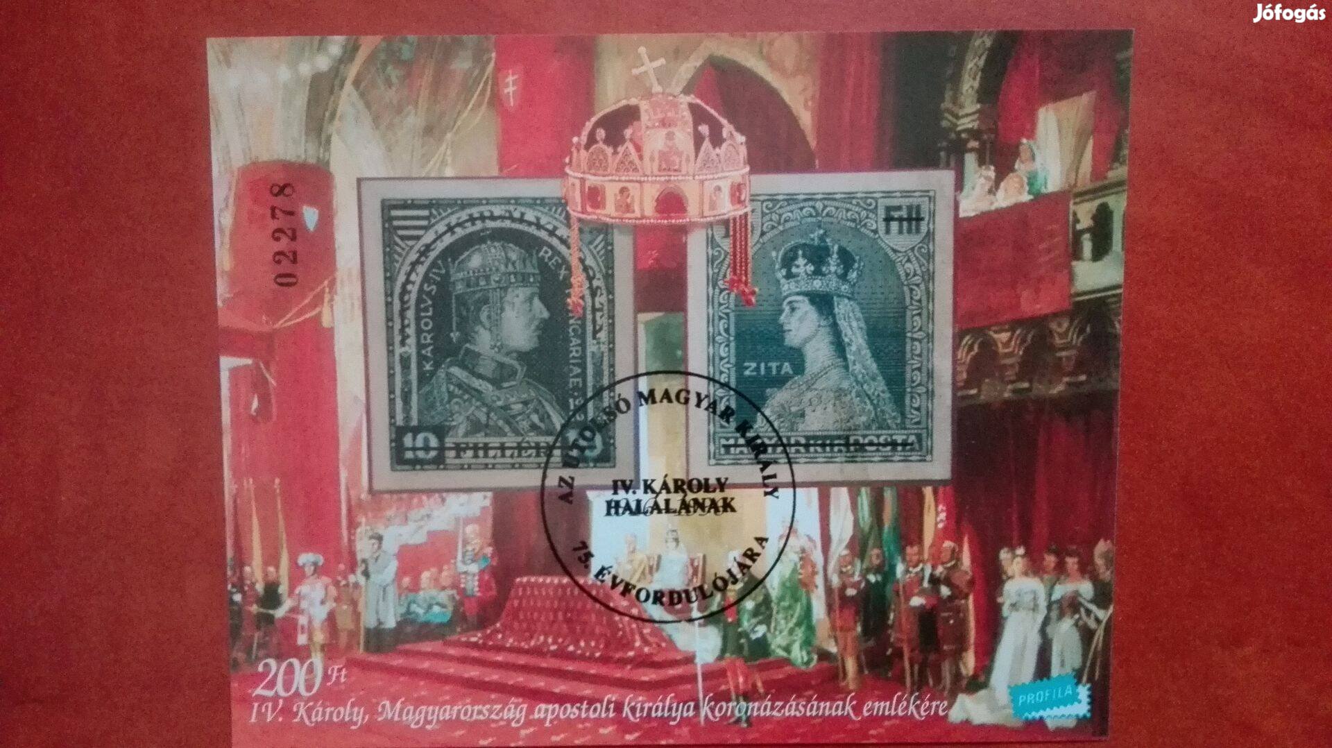 75 évfordulójára IV. Károly halálának emlékív ritka fellülbélyegz
