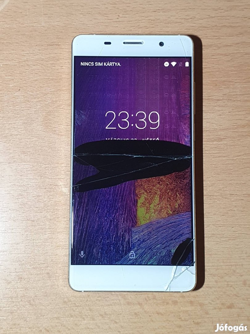 Kijelző törött, érintés csak a törés alatt működik. Otg kábelen keresztül egérrel kezelhető a telefon.