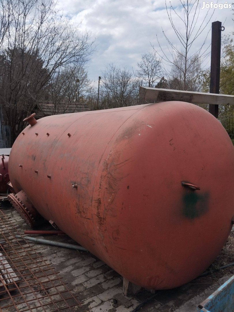 Eladó 10m3 vastagfalú acéltartáj , használt, de jó állapotú. Három masszîv lábon álló. Csere is szóba jöhet, kemény tüzifa.